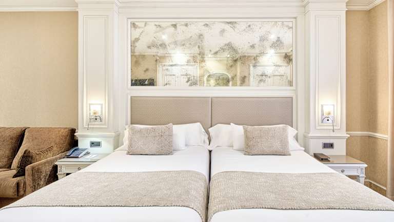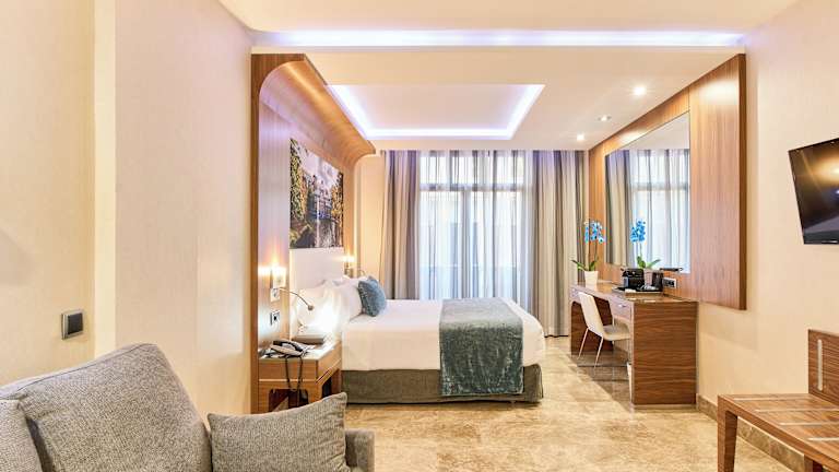 Das Hotel VP Jardín de Recoletos befindet sich in einer erstklassigen Lage im Herzen von Madrids elegantem Stadtviertel Barrio de Salamanca. Sie erreichen den Retiro-Park in nur 5 Gehminuten und können von dort aus angenehme Spaziergänge inmitten üppiger Vegetation unternehmen. Berühmte Sehenswürdigkeiten wie das Puerta de Alcalá-Monument, die Einkaufsstraße Calle Serrano und das Prado-Museum sind ebenfalls in unmittelbarer Nähe. Die nächste Bushaltestelle ist nur 2 Gehminuten entfernt und die nächste U-Bahn-Station erreichen Sie nach einem 5-minütigen Spaziergang. Der Bahnhof Atocha und die Bushaltestelle Mendez Alvaro sind ebenfalls bequem zu erreichen. Das Stadtzentrum mit der Puerta del Sol ist in ca. 15 Minuten zu Fuß erreichbar. Der Flughafen Madrid-Barajas liegt etwa 15 km entfernt.