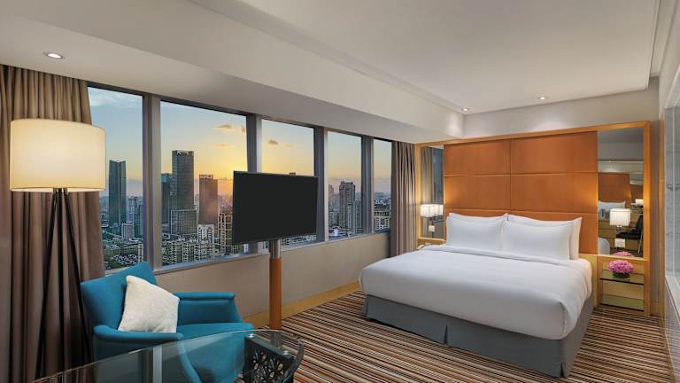 Die luxuriösen Unterkünfte im Jin Jiang Tower Hotel sind geräumig und mit hochwertiger Bettwäsche und Möbeln ausgestattet. Jedes Zimmer verfügt über ein elegantes Badezimmer mit Badewanne und Dusche sowie über Annehmlichkeiten wie Kabel-TV und Haartrockner.