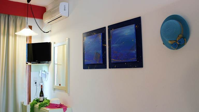 Die Snackbar des Hotels serviert ein englisches oder kontinentales Frühstück sowie kleine Mahlzeiten während des Tages. Am Abend können Sie Cocktails und Ouzo in einer freundlichen Atmosphäre genießen. Auf dem Hotelgelände befindet sich auch ein Mini-Markt, in dem Sie Ihre täglichen Einkäufe erledigen können. In Gehweite von den Studios finden Sie eine große Auswahl an Restaurants mit köstlichen griechischen und internationalen Speisen sowie Cafés und Bars.