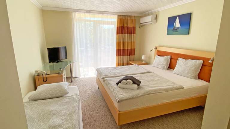 Alle Zimmer und Suiten im Solaris Hotel verfügen über einen eigenen Balkon, auf dem Sie die frische Luft und den Blick auf die Umgebung genießen können. Die Zimmer sind komfortabel eingerichtet und verfügen über Annehmlichkeiten wie Kabel-TV.
