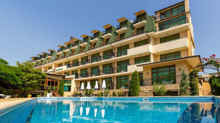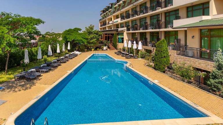 Das Hotel Julia in Sweti Vlas bietet seinen Gästen eine moderne Unterkunft mit Annehmlichkeiten wie einem Außenpool, einem Fitnesscenter und kostenfreiem WLAN. Die Zimmer sind komfortabel eingerichtet und verfügen über einen Balkon mit Meerblick. Das Hotel verfügt außerdem über ein Restaurant, eine Bar und ein Frühstücksbuffet. Die Lage des Hotels ist ideal, da der Strand nur 700 m entfernt ist und das Stadtzentrum von Sunny Beach in der Nähe liegt.