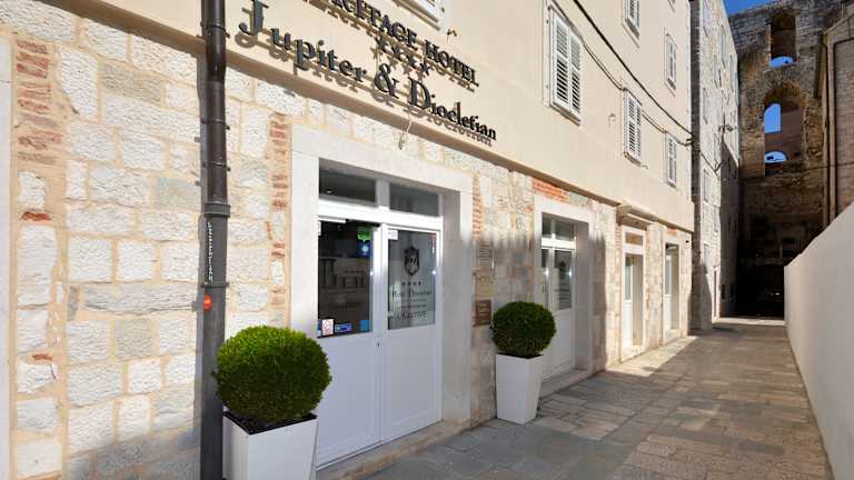 Das Jupiter Luxury Hotel liegt im historischen Zentrum von Split, innerhalb des Diokletianspalastes aus dem 4. Jahrhundert. Es befindet sich in einer Fußgängerzone, die reich an Geschichte, Geschäften und städtischem Lifestyle ist. In der Nähe des Hotels finden Sie das Museum für Archäologische Monumente von Kroatien und die Ivan-Mestrovic-Galerie. Der Strand ist nur etwa 10 Gehminuten entfernt und der Busbahnhof sowie der Bahnhof befinden sich in etwa 300 m Entfernung. Der Flughafen von Split ist ca. 25 km entfernt.