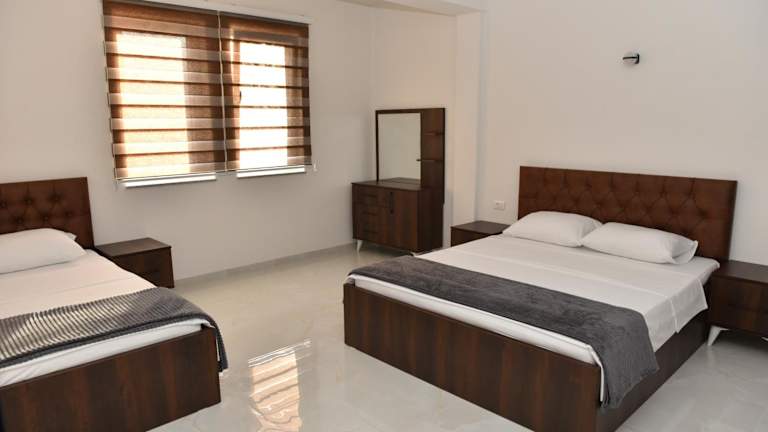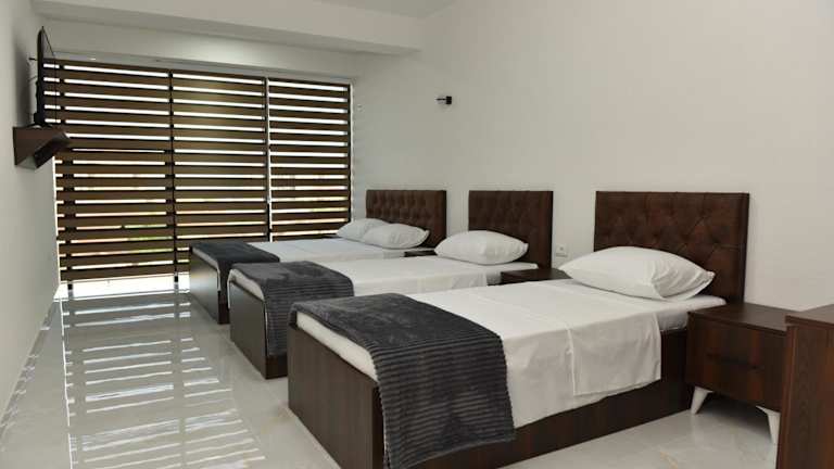 Die Zimmer sind mit einem Schreibtisch, einem Flachbild-TV, einem eigenen Badezimmer sowie Bettwäsche und Handtüchern ausgestattet. Des Weiteren wird jedem Zimmer ein Kleiderschrank zur Verfügung gestellt.