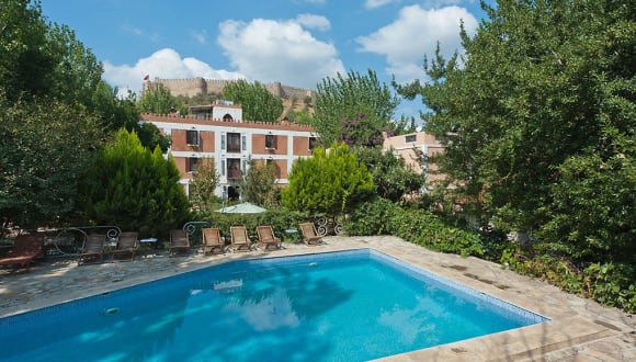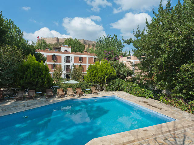 Das familiengeführte Hotel Kalehan in Selçuk ist ein charmantes Hotel im Stil eines osmanischen Gasthauses. Die kürzlich renovierte Unterkunft bietet eine authentische Atmosphäre und individuellen Charakter. Das Hotel befindet sich in einer ruhigen Umgebung, nur wenige Minuten vom touristischen Zentrum von Selçuk entfernt. Der große Garten mit Swimmingpool und die antiken Möbel verleihen dem Hotel eine besondere Atmosphäre. Genießen Sie die entspannte Atmosphäre und die traditionelle Gastfreundschaft.
