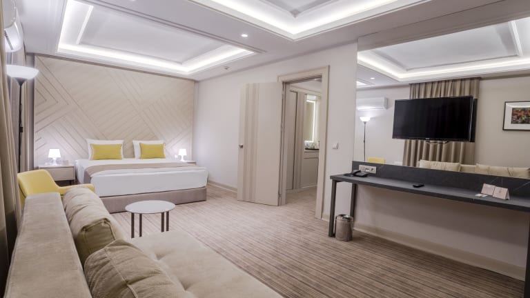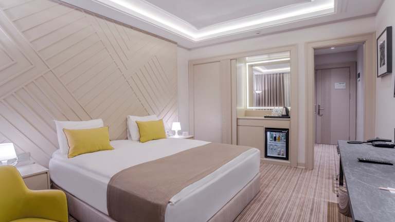 Die Zimmer im Hotel Kaleli sind modern und komfortabel eingerichtet. Sie verfügen über eine Klimaanlage und kostenfreies WLAN sowie einen TV und einen Kühlschrank. Die Zimmer sind in sanften Tönen gehalten und mit Teppichböden ausgestattet.
