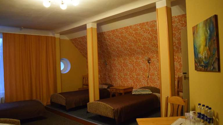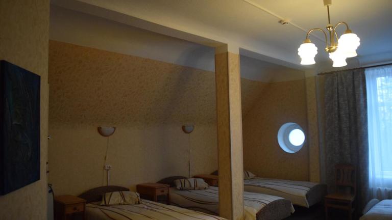 Das Hotel Kalna Ligzda in Smiltene bietet gemütlich eingerichtete Zimmer mit einer entspannten Atmosphäre am Stadtrand. Genießen Sie die malerische Aussicht aus den Fenstern und nutzen Sie die Sauna zur Entspannung. Das Restaurant bietet ein leckeres Frühstücksbuffet und Lunchpakete, und der Zimmerservice steht Ihnen ebenfalls zur Verfügung. Das Personal ist freundlich und hilfsbereit und arrangiert gerne Führungen für Sie.