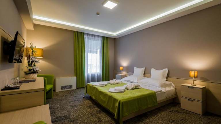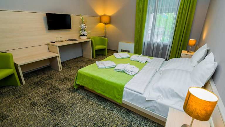 Das Hotel Kamilla befindet sich in Balmazújváros, etwa 22 km entfernt von Hajduszoboszlo Extrem Zona und dem Aquapark Hajdúszoboszló. Die Umgebung bietet einen ruhigen Rückzugsort und die Möglichkeit, die Sehenswürdigkeiten der Region zu erkunden. Der nächstgelegene Flughafen ist der Flughafen Debrecen, der in 30 km Entfernung erreicht werden kann.