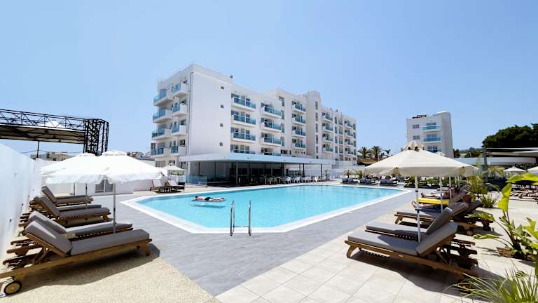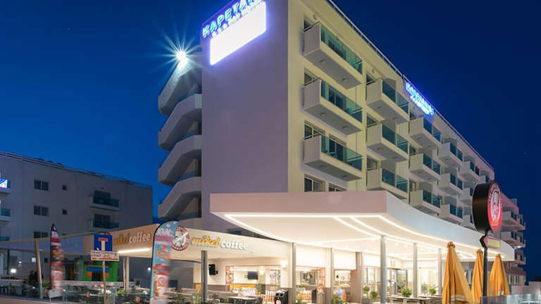 Das Kapetanios Bay Hotel Protaras liegt im Herzen von Protaras und ist nur etwa 500 m von den Sandstränden entfernt. Der berühmte Flamingo Strand ist nur 3 Minuten zu Fuß entfernt und der beliebte Fig Tree Bay Strand erreichen Sie bequem in 5 Minuten. Das Stadtzentrum von Protaras ist etwa 4 km entfernt und bietet verschiedene Einkaufs- und Unterhaltungsmöglichkeiten.