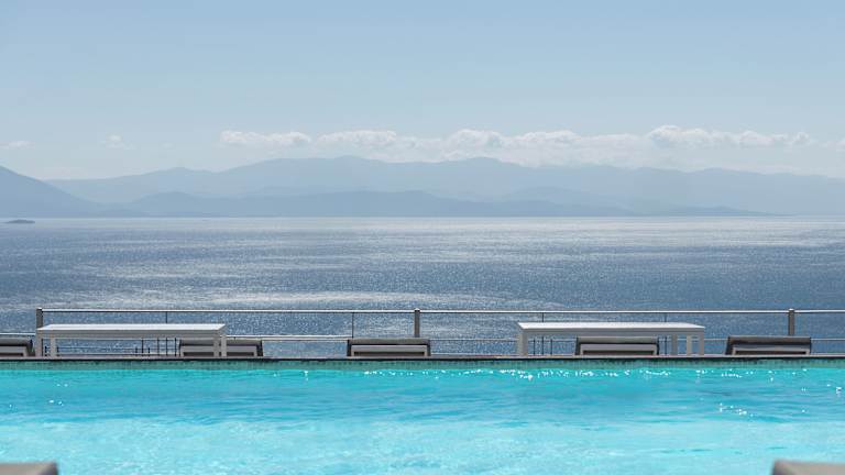 Die Zimmer im Karavia Lux Inn sind elegant eingerichtet und bieten Ihnen einen komfortablen Rückzugsort. Die Matratzen von Coco-mat sorgen für einen erholsamen Schlaf und die handgefertigten Kunstwerke verleihen den Zimmern eine besondere Note. Jedes Zimmer verfügt über einen möblierten Balkon oder eine Terrasse mit Panoramablick auf das Meer, den Pool und die Berge. Ein geothermisches Kühl- und Heizsystem sorgt für angenehme Temperaturen zu jeder Jahreszeit und ein 32-Zoll-Flachbild-TV steht Ihnen zur Verfügung. Das moderne Badezimmer ist mit einer Duschkabine ausgestattet und einige Zimmer bieten zudem einen gemütlichen Kamin.