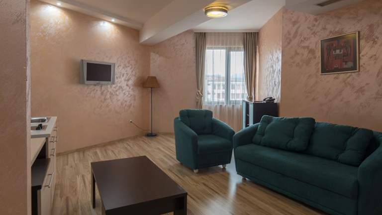 Die Unterkünfte im Hotel Kardjali sind geräumig und bieten den Gästen Annehmlichkeiten wie Kabel-TV und eine Minibar. Einige Zimmer verfügen sogar über einen Flachbild-TV und eine Küchenzeile. Für zusätzlichen Komfort können die Gäste auch ein Frühstück auf ihrem Zimmer genießen.