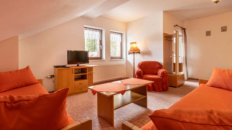 Das Hotel Karl befindet sich in der Nähe der Skilifte in Špičák und bietet somit eine ideale Lage für alle Ski- und Snowboardliebhaber. Das Zentrum von Železná Ruda ist nur 4 km entfernt, wo Sie weitere Geschäfte, Restaurants und Unterhaltungsmöglichkeiten finden. Die Seen Černé jezero und Čertovo jezero sind ebenfalls nur ca. 4 km vom Hotel entfernt und bieten eine wunderschöne Naturkulisse zum Entspannen und Erkunden.