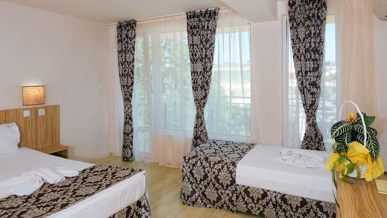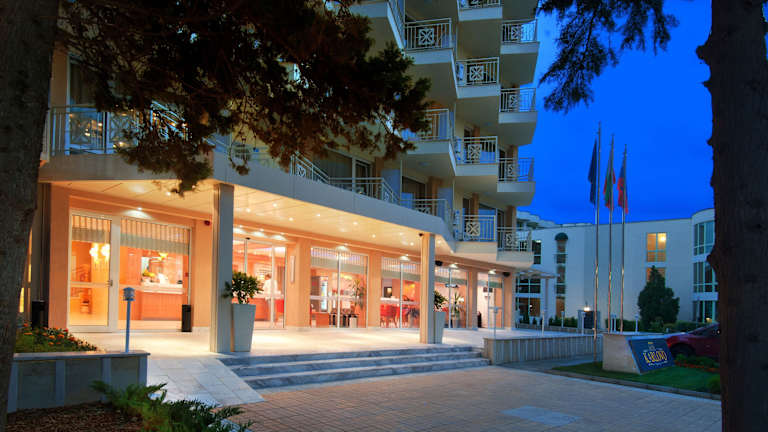 Das Karlovo Hotel liegt in zentraler Lage in Sonnenstrand, nur 30 m von der belebten Promenade entfernt. Der Sandstrand ist nur 200 m entfernt und lädt zum Sonnenbaden und Entspannen ein. Das historische Zentrum von Nessebar erreichen Sie nach 3 km und der Flughafen Burgas ist etwa 35 Fahrminuten entfernt.