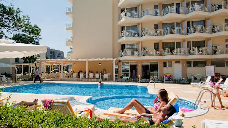Das Karlovo Hotel in Sonnenstrand bietet Ihnen moderne und klimatisierte Zimmer in zentraler Lage, nur wenige Schritte von der Promenade entfernt. Hier können Sie einen entspannten Urlaub genießen und das bulgarische Küche sowie internationale Gerichte im hoteleigenen Restaurant probieren. Der Außenpool und die Nähe zum Strand machen diesen Ort zu einer idealen Wahl für einen erholsamen Aufenthalt.
