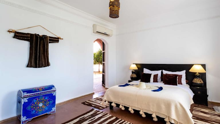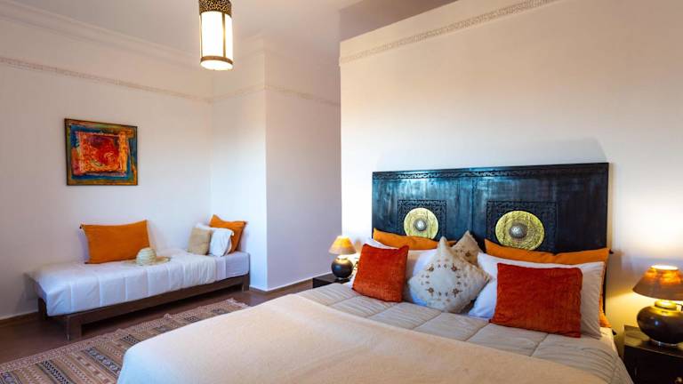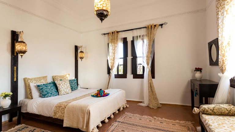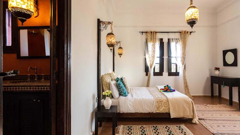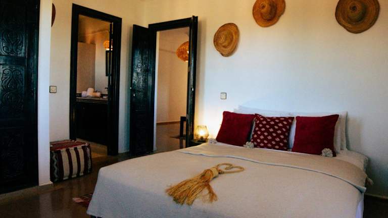 Die Zimmer und Suiten im Kasbah Caracalla sind im traditionellen marokkanischen Stil eingerichtet und bieten eine gemütliche und authentische Atmosphäre. Jedes Zimmer verfügt über ein eigenes Badezimmer und bietet einen herrlichen Blick auf die Olivenhaine und das atemberaubende Atlasgebirge. Genießen Sie den Komfort und die Ruhe in Ihrem Zimmer und tauchen Sie ein in die faszinierende Kultur Marokkos.