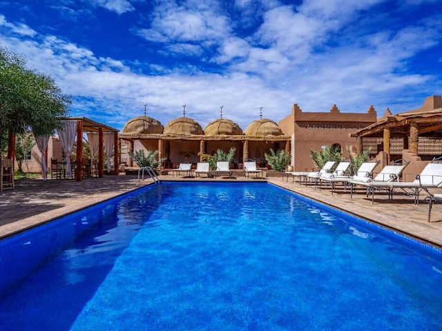Das Hotel Kasbah Sahara liegt nur 300 m von M'hamid El Ghizlane entfernt und bietet eine ideale Lage für diejenigen, die die Wüstenlandschaft Marokkos erkunden möchten. M'hamid El Ghizlane ist ein traditionelles Berber-Dorf mit einer reichen Kultur und Geschichte. Die Umgebung bietet zahlreiche Möglichkeiten für Outdoor-Aktivitäten wie Wüstenwanderungen, Kamelreiten und Quadfahren. Die Sanddünen von Erg Chegaga sind ebenfalls leicht erreichbar und bieten eine beeindruckende Kulisse für einen unvergesslichen Aufenthalt.