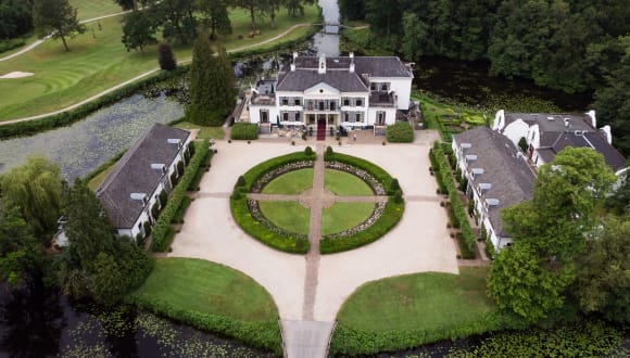Das Restaurant des Kasteel Engelenburg befindet sich in einer eleganten Veranda aus dem 19. Jahrhundert und bietet einen Blick auf das Anwesen und den Golfplatz. Es serviert hochwertige Speisen und schafft eine ideale Atmosphäre für geschäftliche Treffen sowie romantische Abendessen.