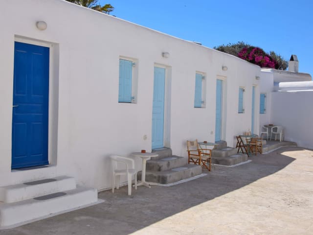 Das Hotel Kastelakia Mykonos liegt zentral in Mykonos-Stadt, nur 1,1 km von Ornos und 1,3 km vom Strand Psarou entfernt. In der Nähe finden Sie auch die berühmten Windmühlen von Mykonos, das Archäologische Museum und den alten Hafen von Mykonos. Die Unterkunft ist gut mit dem neuen Hafen von Mykonos verbunden, der nur 6 km entfernt ist. Der Flughafen Mykonos ist ebenfalls leicht erreichbar und nur 3 km entfernt.