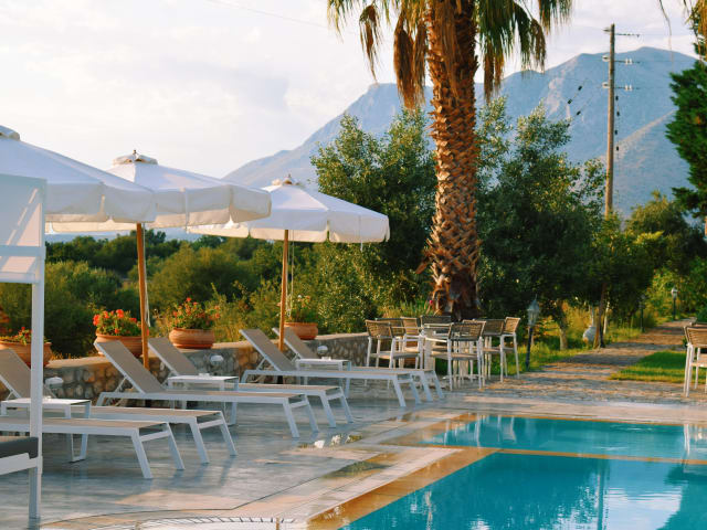 Das Hotel Kastro Maini bietet einen Außenpool mit Hydromassage, der sich perfekt zum Entspannen und Erfrischen eignet. Es gibt auch einen separaten Pool für Kinder. Für zusätzliche Entspannung können Sie den Wellnessbereich mit Sauna und Massageanwendungen nutzen.