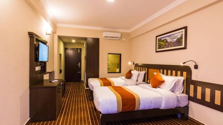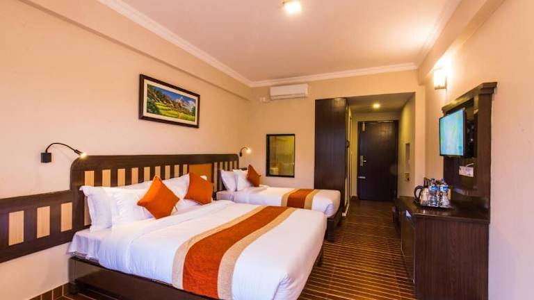 Das Hotel Kausi in Pokhara ist eine hervorragende Wahl für Reisende, die eine komfortable Unterkunft in der Nähe des Sees Fewa suchen. Mit einem schönen Garten, kostenfreien Parkplätzen und einem freundlichen Personal bietet das 4-Sterne-Hotel eine angenehme Atmosphäre und einen hervorragenden Service. Genießen Sie den Stadtblick von den klimatisierten Zimmern aus und lassen Sie sich im Restaurant und an der Bar verwöhnen. Das Hotel bietet auch praktische Annehmlichkeiten wie einen kostenlosen Shuttleservice, Zimmerservice und einen Geldwechsel.