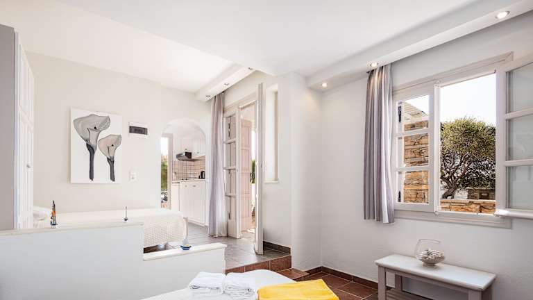 Das Kavouras Village befindet sich in Stelida, nur 350 m vom Strand von Agios Prokopios entfernt. Von hier aus haben Sie einen bequemen Zugang zu den Sandstränden von Naxos und können das türkisblaue Meer in vollen Zügen genießen. Die Umgebung bietet auch zahlreiche Restaurants, Bars und Geschäfte, die zu einem gemütlichen Bummel einladen.