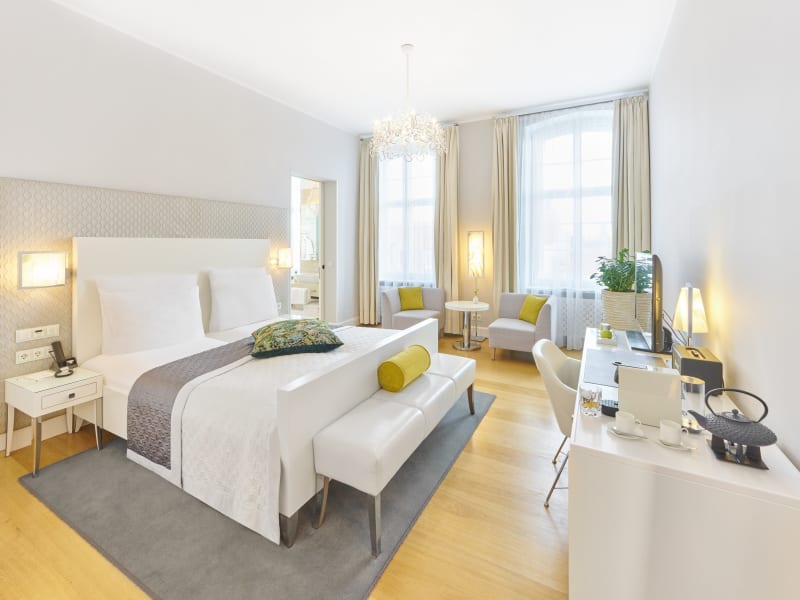 Individuell modern gestaltete 18 Doppel- & Deluxezimmer sowie Junior Suiten, dazu die luxuriöse Bassermann-Suite und der kleine Wellness- und Beautybereich.