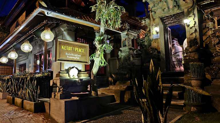 Das Ketut's Place Bed & Breakfast Ubud ist ein charmantes Hotel, das von üppigen balinesischen Gärten umgeben ist und eine entspannte Atmosphäre bietet. Genießen Sie den Außenpool und die gemütlichen Zimmer mit einer eigenen Terrasse oder einem Balkon. Der 24-Stunden-Zimmerservice und kostenloses WLAN sorgen für Ihren Komfort. Das Hotel bietet auch verschiedene Serviceleistungen wie Massagen, Mietfahrzeuge und Unterstützung bei der Planung von Ausflügen. Probieren Sie regionale Spezialitäten im hoteleigenen Restaurant und genießen Sie Ihr Frühstück auf Ihrem Zimmer.