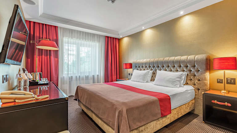 Das Khreschatyk Hotel in Kiew bietet seinen Gästen eine erstklassige Lage im Herzen der Stadt, zwischen dem Europaplatz und dem Unabhängigkeitsplatz. Die Zimmer sind komfortabel ausgestattet und verfügen über kostenloses WLAN sowie Satelliten-TV. Gäste haben auch kostenlosen Zugang zum Fitnessstudio. Das Hotel ist ideal gelegen, um die Sehenswürdigkeiten von Kiew zu erkunden, darunter die St.-Sophia-Kathedrale und das National Art Museum of Ukraine.