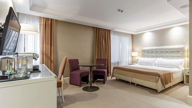 Das Khreschatyk Hotel befindet sich in einer erstklassigen Lage im Herzen von Kiew. Es liegt zwischen dem Europaplatz und dem Unabhängigkeitsplatz und ist von der Haupteinkaufs- und Geschäftszone der Stadt umgeben. In der Nähe des Hotels finden Sie eine Vielzahl von öffentlichen Verkehrsmitteln, die es Ihnen ermöglichen, bequem die verschiedenen Teile der Stadt zu erkunden. Das Hotel ist auch in der Nähe von wichtigen Regierungsinstitutionen wie dem Ministerkabinett, der Nationalbank und verschiedenen Regierungsgebäuden. Die Khreshchatyk-Straße ist ein lebendiger Ort, der bis in die Mitternachtsstunden belebt ist. In Gehweite des Hotels befinden sich der Botanische Garten, die Nationaloper, die Tschaikowsky-Akademie und das Russische Nationaltheater. Auch der Berg und das Denkmal von St. Volodymyr, der Maidan Nezalezhnosti (Unabhängigkeitsplatz) und die St.-Andreas-Kirche sind zu Fuß erreichbar. Das Hotel befindet sich in der Nähe des Flusses Dnepr und des Kozatsky-Hotels.