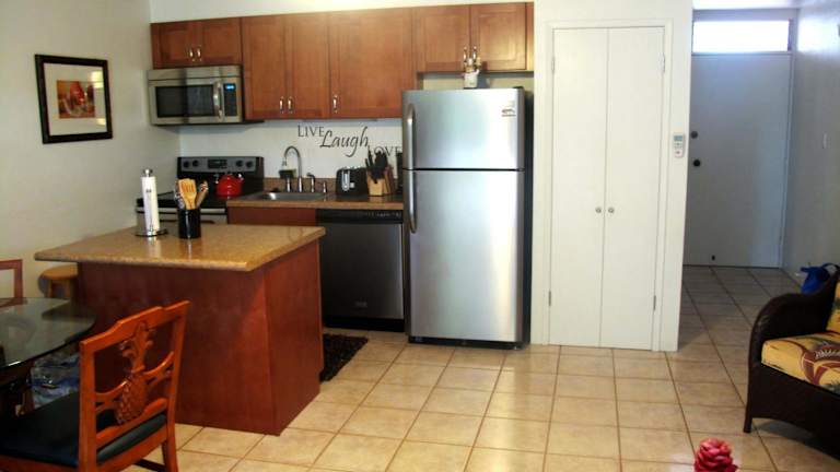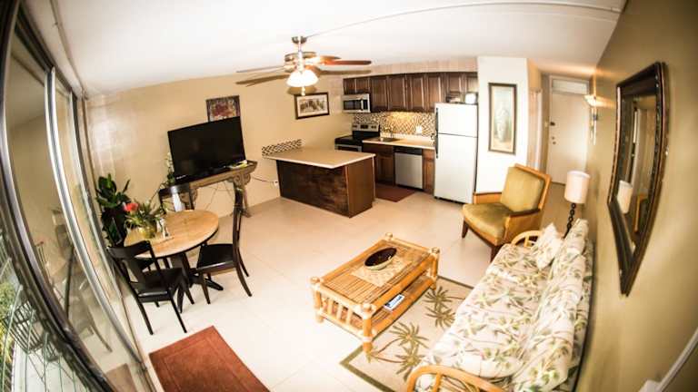 Die Unterkünfte im Kihei Kai Nani - Maui Vista sind geräumige Apartments mit 1 Schlafzimmer, die sich perfekt für Selbstversorger eignen. Jedes Apartment verfügt über eine voll ausgestattete Küche, in der Sie Ihre eigenen Mahlzeiten zubereiten können. Ein Essbereich und ein gemütlicher Sitzbereich mit einem Sofa bieten ausreichend Platz zum Entspannen. Zur Ausstattung gehören auch ein Flachbild-TV mit Pay-per-View-Kanälen und ein Blu-ray-Player für Ihre Unterhaltung. Das Apartment verfügt über ein eigenes Badezimmer mit einer Badewanne und einer Dusche sowie über Wäschemöglichkeiten und einen Balkon.