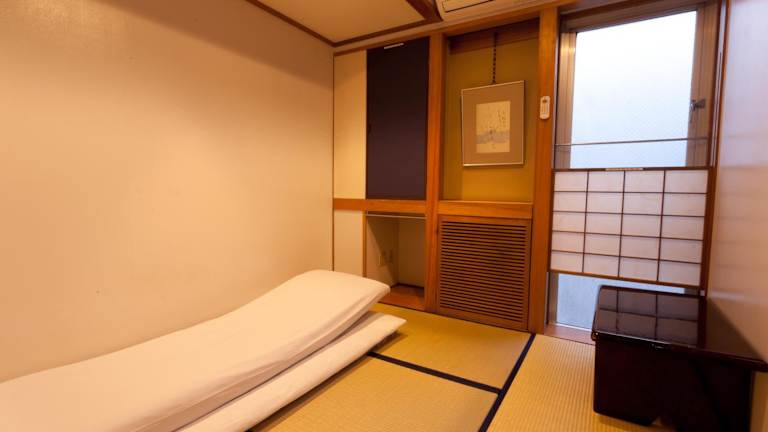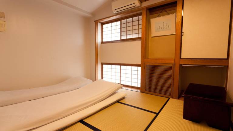 Im Hotel Kimi Ryokan erleben Sie traditionelle japanische Unterkünfte mit Tatamimatten und Futonbetten. Die Zimmer sind klimatisiert und mit Paravents aus Shoji-Papier ausgestattet. Sie nutzen gemeinschaftliche Bäder, Duschen und WCs. Ein Highlight ist die typisch japanische Badewanne aus Zypressenholz, die Sie zur gemeinschaftlichen Benutzung nutzen können.
