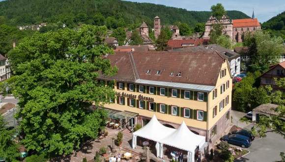 Herzlich willkommen im 4-Sterne Flair Hotel Restaurant Kloster Hirsau im Schwarzwald. Das Hotel liegt bei Calw unweit von Pforzheim, Sindelfingen, Böblingen sowie der Landeshauptstadt Stuttgart im Luftkurort Hirsau. Unterhalb der berühmten Benediktiner-Klosteranlage mitten in der herrlichen Natur des Nord-Schwarzwald am Ostweg gelegen, bietet sich das Hotel Kloster Hirsau als idealer Ausgangspunkt zum Wandern und Radfahren, als Tagungshotel oder für Ihre Feiern und Hochzeiten an. Mögen Sie Wellnessurlaub im Schwarzwald? Dann stehen Ihnen für einen entspannenden Aufenthalt in unserer mit mediterranen Ambiente gestalteten Wellnessabteilung zahlreiche Sport- und Wellness-Angebote zur Verfügung. Neben Schwimmbad, Sauna und Fitnessraum werden auch Beautyanwendungen angeboten. Mit seinen 110 Restaurant-Plätzen und 5 Tagungsräumen ist das Hotel auch das ideale Tagungshotel oder Ort für Familienfeiern wie Hochzeiten in stilvollem Ambiente, in mitten des herrlichen Naturparks Nord-Schwarzwald.
