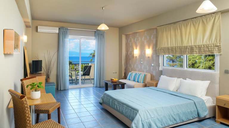 Die geräumigen Zimmer im Kohylia Beach Hotel bieten Ihnen einen Balkon mit herrlichem Meerblick, der perfekte Ort, um den Sonnenuntergang zu beobachten. Jedes Zimmer ist mit Klimaanlage, einem TV, einem Kühlschrank und einem Haartrockner ausgestattet, um Ihnen einen angenehmen Aufenthalt zu ermöglichen.