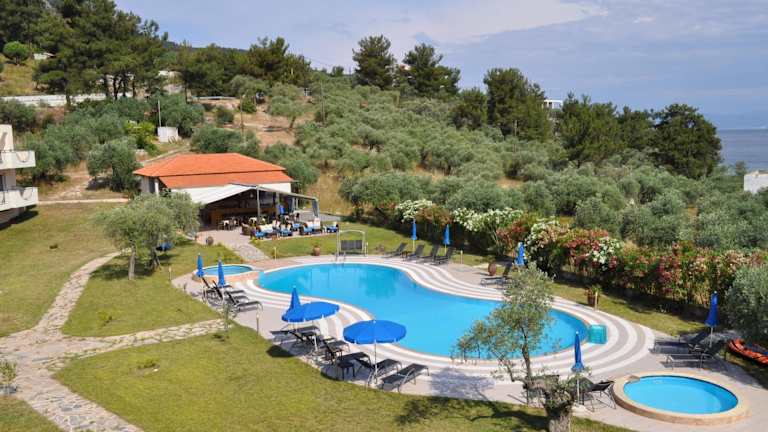Das Kohylia Beach Hotel verfügt über einen wunderschönen Pool, der von Olivenbäumen umgeben ist. Hier können Sie sich entspannen und erfrischen. Der Pool verfügt auch über eine separate Hydromassage im Freien und ein Kinderbecken, sodass auch die kleinen Gäste ihren Spaß haben können. Sonnenliegen und Sonnenschirme stehen kostenlos zur Verfügung, sodass Sie die Sonne und den Blick auf das Meer in vollen Zügen genießen können.