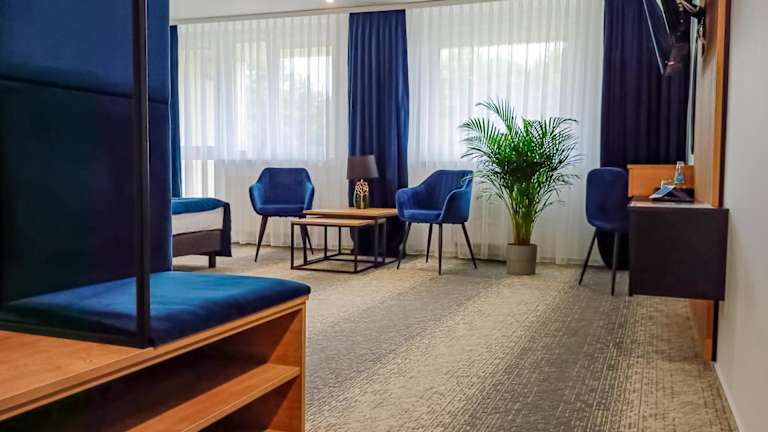Das Centrum Konferencyjno Rekreacyjne Molo liegt eingebettet in den Landschaftspark Sulejów und nur 50 m vom Ufer des Sees Zalew Sulejowskie entfernt. Die Lage bietet eine wunderschöne Umgebung, die zum Entspannen und Erholen einlädt. Die Gäste können die malerische Aussicht auf den See und die umliegende Natur genießen.