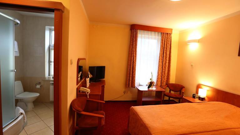 Die Zimmer im Hotel Korona sind komfortabel und mit modernen Annehmlichkeiten ausgestattet. Jedes Zimmer verfügt über einen Flachbild-TV und eine Minibar. Das private Badezimmer ist mit einer Dusche und kostenfreien Pflegeprodukten ausgestattet. Mineralwasser steht kostenfrei zur Verfügung.