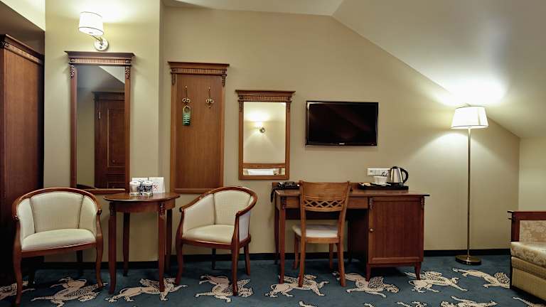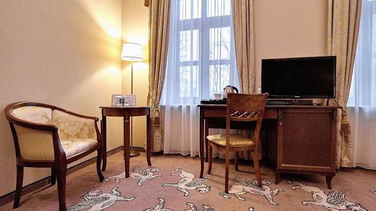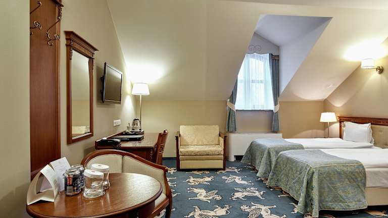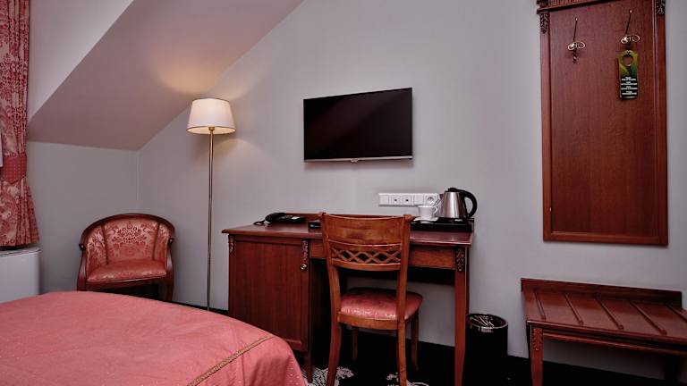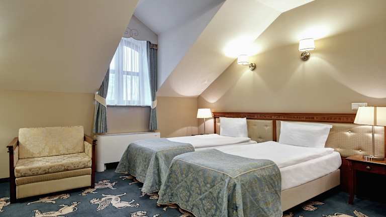 Die Zimmer im Hotel Koronny sind klimatisiert und verfügen über kostenfreies WLAN sowie Internetzugang (LAN). Sie sind geschmackvoll mit antiken Möbeln eingerichtet und bieten Annehmlichkeiten wie einen Flachbild-Sat-TV, einen Laptop-Safe sowie eine Minibar mit kostenfreier Wasserflasche und Kaffee- und Teezubehör. Die Badezimmer sind mit kostenfreien Markenpflegeprodukten, einem Haartrockner sowie einer Dusche oder Badewanne ausgestattet.