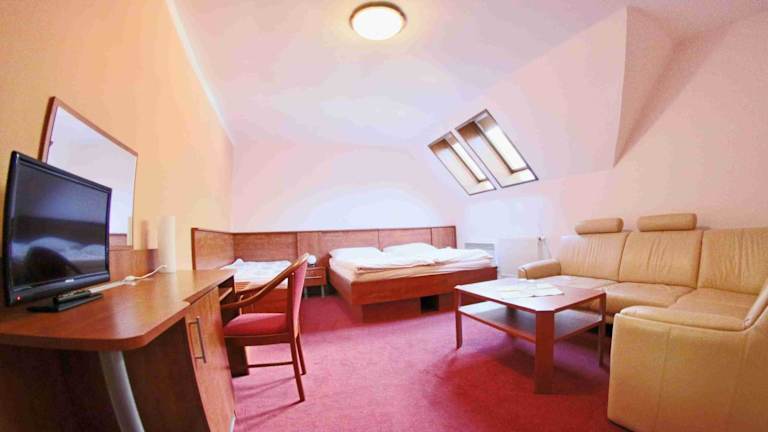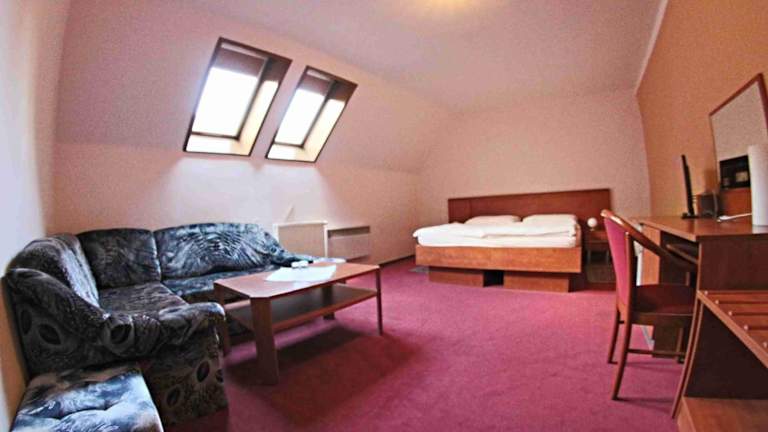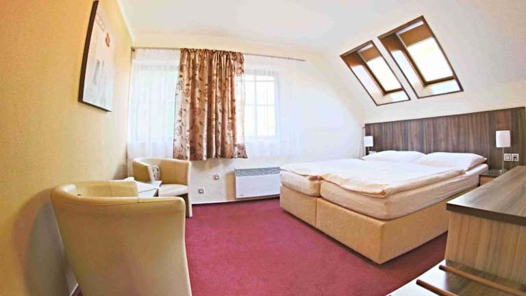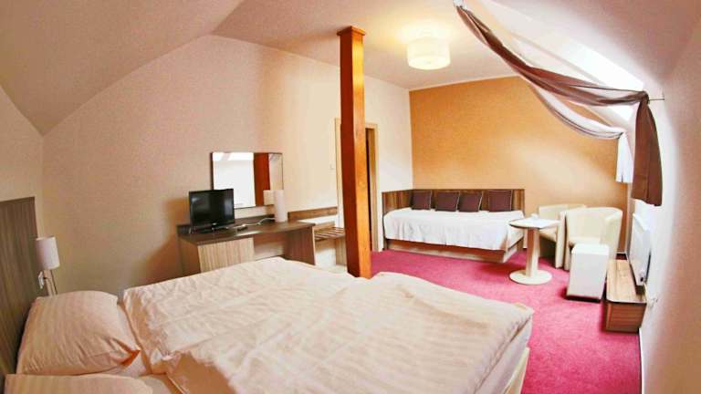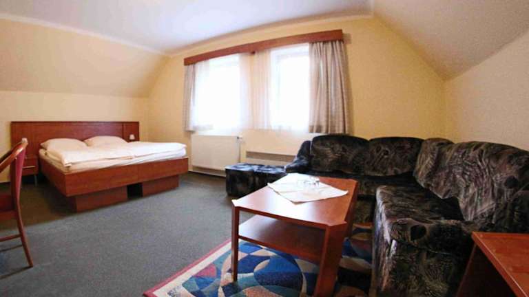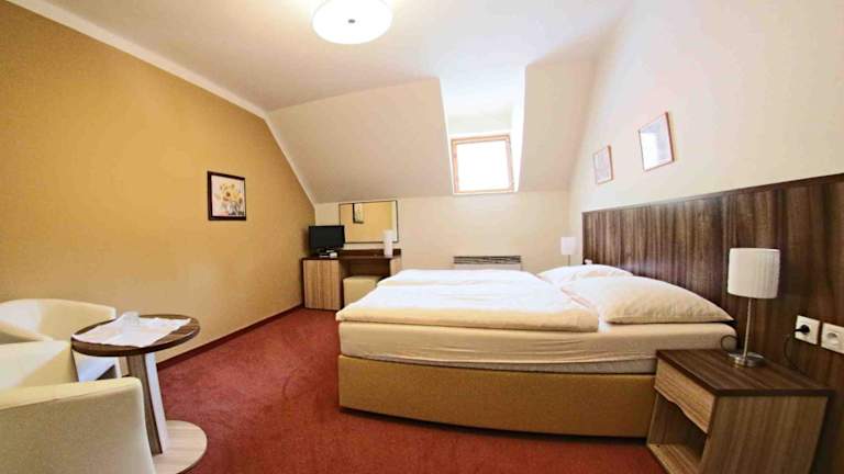 Die Zimmer im Hotel Koruna bieten allen Komfort, den Sie für einen angenehmen Aufenthalt benötigen. Jedes Zimmer verfügt über ein eigenes Badezimmer sowie einen Sat-TV und einen DVD-Player für Unterhaltung. Darüber hinaus steht Ihnen kostenloses WLAN zur Verfügung, damit Sie mit Ihren Lieben in Kontakt bleiben können. Ein kostenloser bewachter Parkplatz ist ebenfalls vorhanden, um Ihren Aufenthalt so bequem wie möglich zu gestalten.