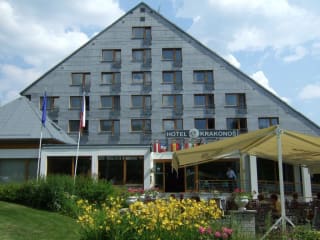 Hotel Krakonoš *** befindet sich in ruhiger Gegend über der Stadt und hat im Angebot 86 Zimmer (72/2, 5 Appartements, 2/1 behindertengerechte Zimmer) mit Sozialeinrichtung, Fernseher, Kühlschrank, Haartrockner und Telefon. Wir bieten eine Unterkunft an mit kompletter Kurbetreuung direkt im Hotel, Schwimmbad, mikroklimatische Salzgrotte, Pediküre, Maniküre, Friseur, Kosmetik. Im Hotel nutzen wir natürliche, leicht mineralisierte Wasser aus eigenen Brunnen. Dieses mineralisierte Wasser ist nicht nur geeignet zum trinken, aber es dient zum Baden und wann Behandlungen im Spa. Das Hotel hat eine ideale Lage für eine Familienerholung, Firmenkonferenzen, Veranstaltungen von verschiedenen Treffen , Kindererholungsaufenthalte- Vorschulalter, Schulalter, und zu verschiedenen Sportaktivitäten. Die abwechslungsreiche Gegend lockt zu Ausflügen, die für Natur und Historieliebhaber geeignet sind. Die Anzahl der Wälder in der Umgebung befriedigt auch die anspruchvollsten Pilzsammler. Hotel Krakonoš empfängt Sie in einer schönen Naturgegend über der Stadt Marienbad, ungefähr 2 km vom Zentrum. Wie kommen Sie zu uns aus der Stadt ohne Auto? Mit den öffentlichen Verkehrsmitteln, mit einer Aussichtsbahn und einer Kabinenseilbahn. Schon ein paar Jahre bauen wir sgn. Märchenskulpturparadies, in die Skulpturen sind Märchenmotive eingebaut hier ist auch ein Bethlehem, bei dem wir regelmäßig Weihnachtskonzerte veranstalten. Jedes Jahr im September finden die schon traditionellen Sankt „Wenzelfeste“ zum Tag der Staatlichkeit statt. Marienbad ist eine Stadt die in Parkanlagen und Wäldern liegt, in denen die minerale Heilquellen entspringen. Die Architektur des 19. Jahrhunderts gibt der Stadt einen nostalgischen und eleganten Charakter. Marienbad hat ziemlich reiches Kulturleben mit der Besuchsmöglichkeit verschiedener Kulturveranstaltungen.