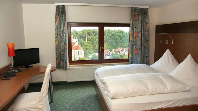Das Hotel Krone in Haigerloch bietet eine ideale Lage für einen entspannten Aufenthalt inmitten der Natur und dennoch in der Nähe des Stadtzentrums von Stuttgart. Das familiengeführte Hotel bietet kostenfreies WLAN und komfortable Zimmer mit herrlichem Blick auf die umliegenden Berge. Genießen Sie jeden Morgen ein frisch zubereitetes Frühstück und lassen Sie sich im hoteleigenen Restaurant mit saisonalen, regionalen und biologischen Speisen verwöhnen. Die Umgebung bietet zahlreiche Möglichkeiten für Aktivitäten wie Wandern und Radfahren. Kostenlose Parkplätze stehen zur Verfügung und die Autobahn A81 ist in nur 8 Autominuten erreichbar.