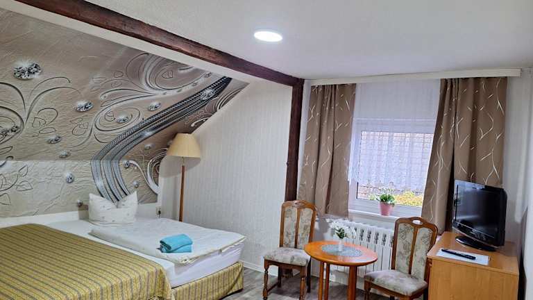 Die Zimmer im Hotel Kulturhaus Felgeleben sind komfortabel und bieten Annehmlichkeiten wie Kabel-TV und einen gemütlichen Sitzbereich. Hier können Sie sich nach einem erlebnisreichen Tag entspannen und erholen.