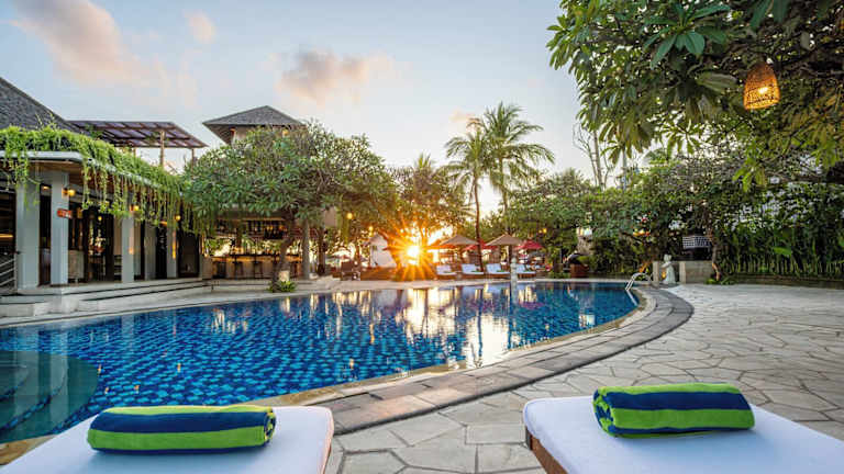 Das Kuta Seaview Boutique Resort ist die perfekte Wahl für einen entspannten Urlaub nur wenige Schritte vom Strand Kuta entfernt. Das Resort bietet komfortable Zimmer im balinesischen Stil, einen Außenpool und ein Spa. Genießen Sie italienische und internationale Küche im Restaurant Rosso Vivo Dine & Lounge. Die Lage des Resorts ermöglicht es Ihnen, die atemberaubenden Sonnenuntergänge am Strand zu genießen und das aufregende Nachtleben von Kuta zu erkunden.