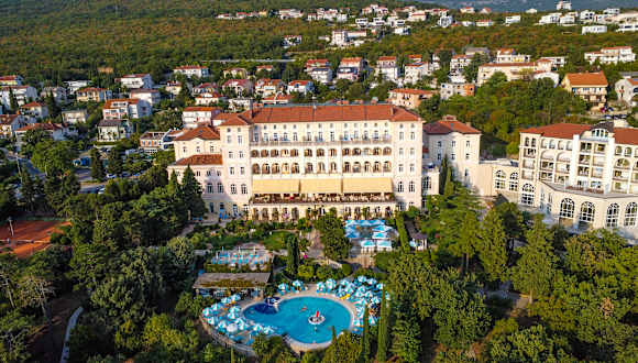 Perfekt auf einem Hügel gelegen und von einem 30.000 m² großen Hotelpark umgeben, kombiniert das HOTEL KVARNER PALACE heute gekonnt 130-jährige Tradition mit zeitloser Eleganz. Waren es schon immer Orte mit Geschichte, die uns faszinierten und die Erinnerungen, welche diese in uns weckten, erleben Sie heute im exklusiven Urlaubszuhause klassische mitteleuropäische Architektur und den unwiderstehlichen Charme der Belle Epoque. Erleben heißt hier fühlen, ankommen bleiben wollen. Im mediterranen Hideaway Ihrer Wahl spüren Sie die perfekte Symbiose aus kroatischer Gastlichkeit und österreichischer Herzlichkeit. Glasklares Meer, mediterranes Mikro-Heilklima und ein traumhaft schöner Strand, garniert mit unzähligen Sport- und Freizeitmöglichkeiten sind die Zutaten, die aus Crikvenica einen der beliebtesten Badeorte der Kvarner Bucht machen. Highlights des Hotel Kvarner Palace: • Genießer-Halbpension mit reichhaltigem kalt-warmem Frühstücksbuffet mit Bioecke • Abends ein vielfältiges Gourmet-Buffet • Unterhaltungsprogramm und Veranstaltungen mit Live-Musik • WLAN in der gesamten Hotelanlage • Freie Benützung unseres PALACE WELLNESS & SPA mit beheiztem Meerwasser-Außenpool, Süßwasser-Innenpool, Sauna, Infrarotkabine & Dampfbad, Ruhebereich und Fitnessraum • NEU ab 2025: kombinierter, beheizter 25 m Meerwasser - In- und Outdoorpool mit großzügigen Ruhe-und Relaxbereichen sowie Liegewiese im Freien im Neubauflügel (Adults only-Bereich) • Teilnahme am Hotelprogramm mit Stadtrundgang etc. • Aktivprogramm z.B: Morgengymnastik, Yoga, Pilates, smovey, Pilates etc. • Liegen und Sonnenschirme auf der Liegewiese an den Pools und im 30.000 m2 großen Hotelpark • Badetasche gefüllt mit 2 großen Handtüchern für Sauna und Pool während Ihres Aufenthaltes • Außenparkplatz • Tiefgaragenplatz in der Kategorie Deluxe, Suite und Familien-Appartement im Hotelpreis inkludiert (gegen Gebühr für andere Kategorien nach Verfügbarkeit Euro 10,- pro Tag) • Benützung der 2 hoteleigenen Sand-Tennisplätze mit Flutlicht (Voranmeldung erbeten) • Heilklima der Adria inklusive! BADEURLAUB in CRIKVENICA Die 8 km lange Crikvenica Riviera bietet eine beeindruckende Auswahl an Stränden - für jeden Geschmack ist etwas dabei: von ruhigen Badebuchten, betonierten Badeplattformen bis hin zu den belebten, flachen Sand- und Kieselstränden mit vielen Freizeitmöglichkeiten wie Rutschen, Jetski, Parasailing, Bananaboot fahren uvm. Alle kroatischen Strände sind öffentlich, aber bewirtschaftet: Sonnenliegen und Sonnenschirme können vor Ort gemietet werden (eine Liege/Tag Euro 10,-). Alternativ kann man eigene Liegen, Luftmatratzen, Handtücher, Zelte, Liegestühle selbst mitbringen und kostenfrei überall entlang des Meeres kostenfrei aufstellen. Wir bieten im Hotel, das nur 5 Gehminuten vom Meer entfernt liegt, Leihliegen, Luftmatratzen und Sonnenschirme an, die Sie gerne kostenfrei ausleihen und an den Stränden nutzen können. Ebenso einen Shuttlebus- und Bootservice zu den nahegelegenen schönen Buchten und Stränden u.a. die Kacjak-Bucht, ideal für Unternehmungslustige!