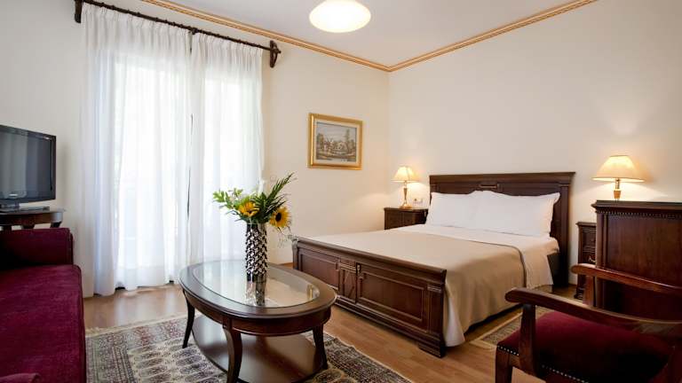 Die Zimmer im Hotel Kymata sind klassisch eingerichtet und bieten einen komfortablen Rückzugsort nach einem Tag voller Erkundungen. Jedes Zimmer verfügt über einen privaten möblierten Balkon, von dem aus Sie die atemberaubende Aussicht auf das Meer genießen können. Die Badezimmer sind modern gestaltet und mit Haartrocknern ausgestattet. Für zusätzlichen Luxus stehen Suiten mit Whirlpool-Badewannen zur Verfügung.