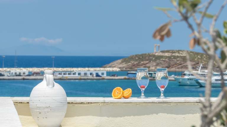 Das Hotel Kymata befindet sich nur 30 m vom wunderschönen Sandstrand von Agios Georgios entfernt. Hier können Sie die Sonne und das Meer in vollen Zügen genießen. Die lebhafte Strandpromenade von Naxos mit ihren Tavernen, Strandbars und Geschäften erreichen Sie nach einem 10-minütigen Spaziergang. Hier finden Sie eine Vielzahl von Unterhaltungsmöglichkeiten und können das pulsierende Leben der Stadt erleben. Die berühmte Sehenswürdigkeit Portara aus dem 6. Jahrhundert vor Christus, die als Wahrzeichen von Naxos gilt, ist nur 500 m entfernt.