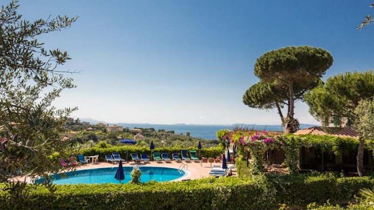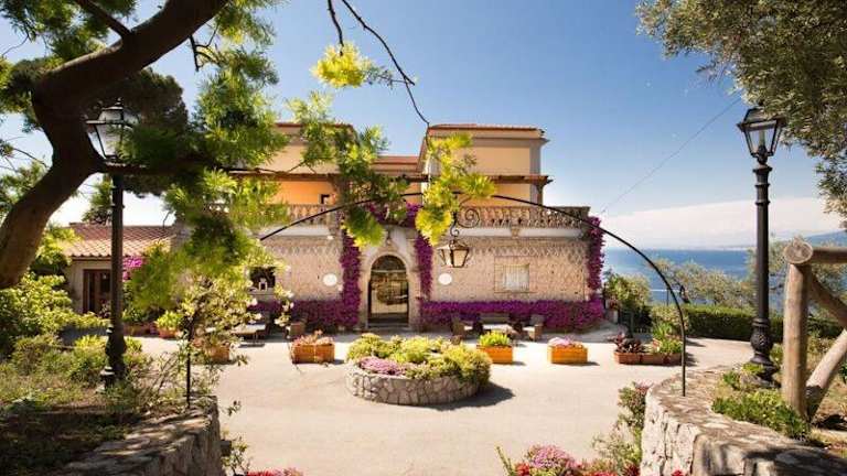 Das Hotel La Badia befindet sich auf einem Hügel, etwa 2 km vom Zentrum von Sorrent entfernt. Von hier aus können Sie einen atemberaubenden Blick auf die Bucht von Neapel genießen. Der Hafen von Sorrent, von dem aus Fähren nach Capri fahren, ist nur eine 25-minütige Fahrt entfernt. Der Bahnhof von Sorrent ist ebenfalls leicht zu erreichen und liegt etwa 3 km entfernt.
