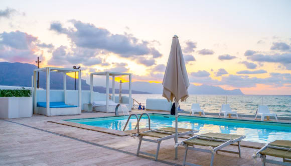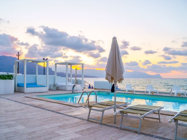 Hotel La Battigia hat seinen Namen von den schönen Lage direkt an der Strandpromenade von Castellammare del Golfo, wo er mit der schönen Terrasse des Restaurants mit Blick aufs Meer und das Schwimmbad mit direktem Zugang zum privaten Badestrand für die Gäste kostenlos ausgestattet entfaltet 'Hotel