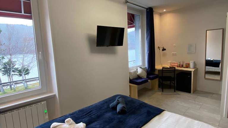Die Zimmer im Hôtel La bonne hôtesse bieten einen Blick auf den See oder den Garten. Alle Zimmer sind mit einem LCD-TV und einer Minibar ausgestattet. Ein Teil der Zimmer verfügt zudem über einen eigenen Balkon. WLAN ist im gesamten Hotel kostenfrei verfügbar.