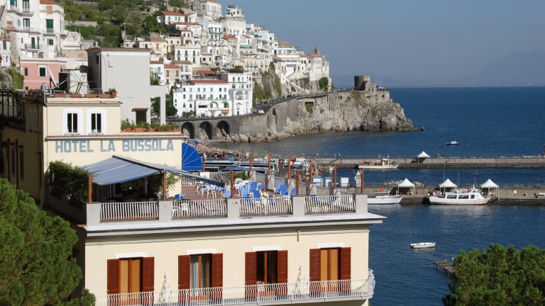 Es liegt im Zentrum, an der Lungomare-Promenade, nur 200 m vom Domplatz und der Anlegestelle entfernt, wo die Schiffe nach Positano, Salerno und Capri ablegen. Ausgestattet mit Klimaanlage, Restaurant, privatem Frühstücksraum, Bar, Lounge mit Klavier, Dachterrasse mit Lounge-Bar, Garage und Parkplatz, Elektroautoaufladung.