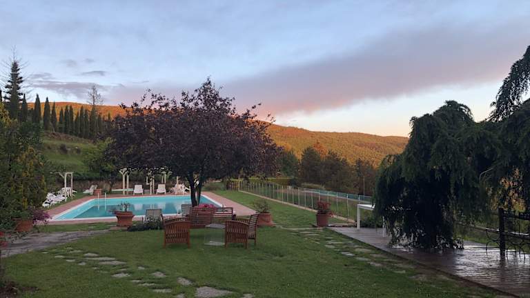 Das Hotel Borgo La Capraia in Castelfranco di Sopra ist ein malerischer Ferienhof, der in 610 m Höhe liegt und einen atemberaubenden Blick auf das Chiantital bietet. Hier können Sie in einer entspannten und idyllischen Umgebung Ihren Urlaub verbringen. Der Ferienhof verfügt über zwei Swimmingpools, Sportplätze und einen Garten mit Grillplatz, der kostenfrei genutzt werden kann. Die Apartments sind im traditionellen toskanischen Stil eingerichtet und verfügen über eine Küchenzeile. Im hoteleigenen Restaurant können Sie regionale Spezialitäten und Pizza aus dem Holzofen genießen. Die Anlage bietet außerdem Pools für Erwachsene und Kinder, einen Volleyballplatz, ein kleines Fußballfeld sowie eine Sonnenterrasse. Parkplätze stehen kostenfrei zur Verfügung. In der Umgebung können Sie das Einkaufszentrum The Mall und das Outlet-Center Fashion Valley besuchen. Florenz ist nur 40 km entfernt.