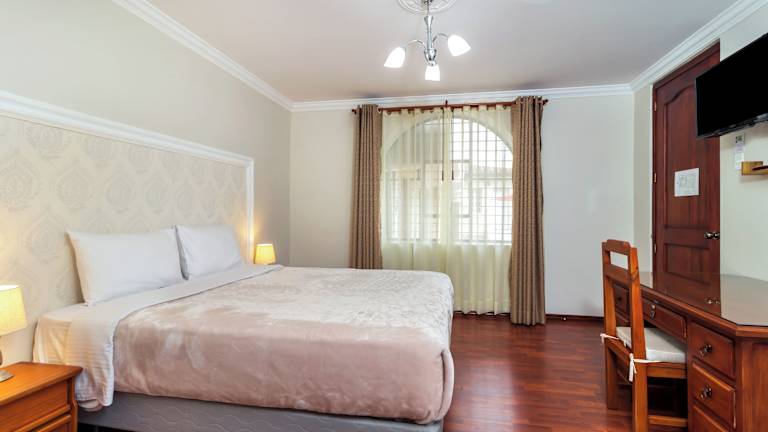 Das Hotel La Cartuja befindet sich in Quito und ist nur 4 km vom Stadtzentrum entfernt. Der nächste Flughafen ist der internationale Flughafen Mariscal Sucre, der etwa 40 km entfernt liegt. Die Lage des Hotels ermöglicht es Ihnen, die Sehenswürdigkeiten und Attraktionen von Quito bequem zu erkunden.